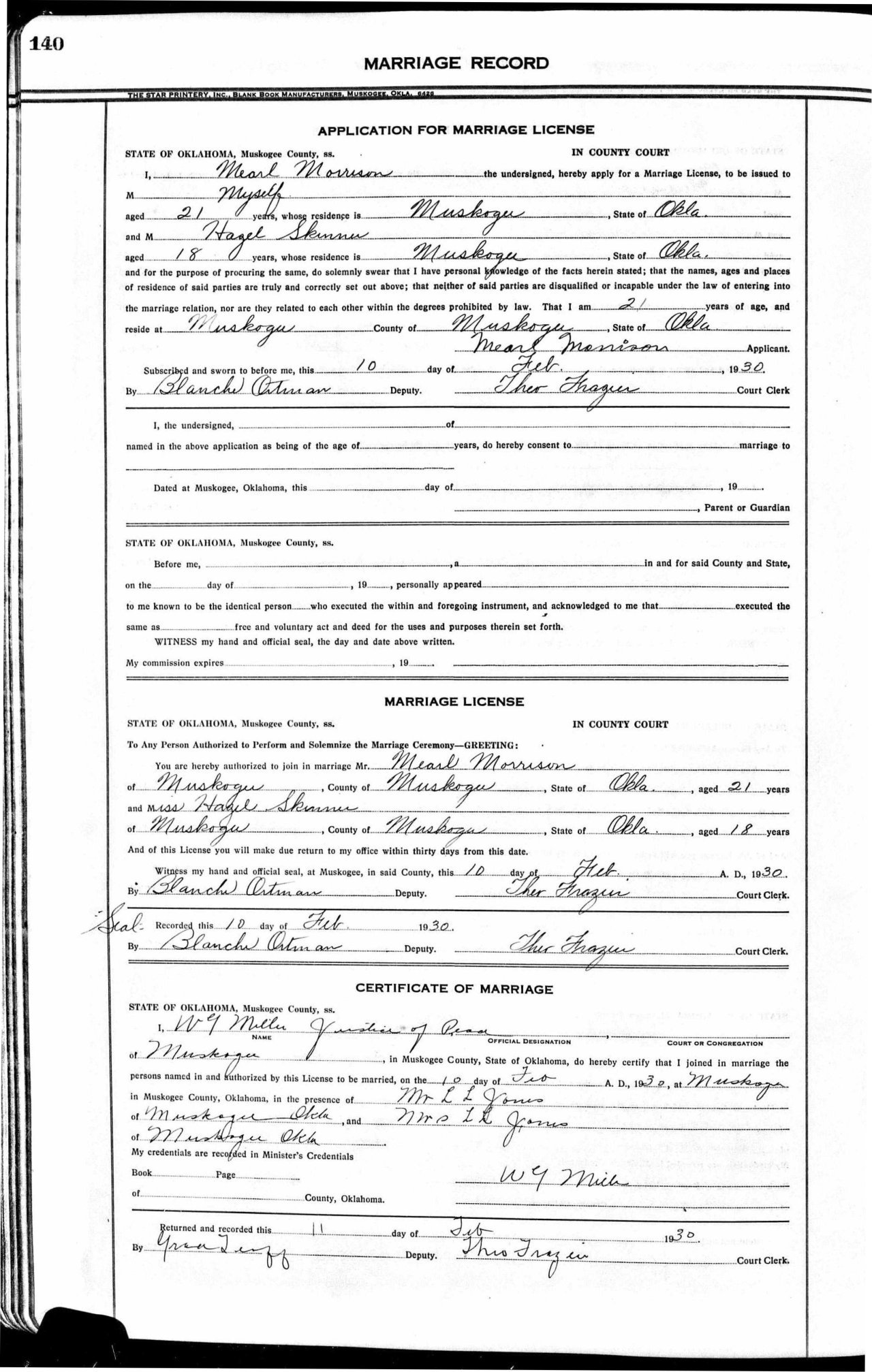 Morrison is survived by a sister, Mrs. Mildred Johnson of Santa Ana, Calif., a daughter, Dora Miner of Ft. Worth, Texas, and five grandsons.
