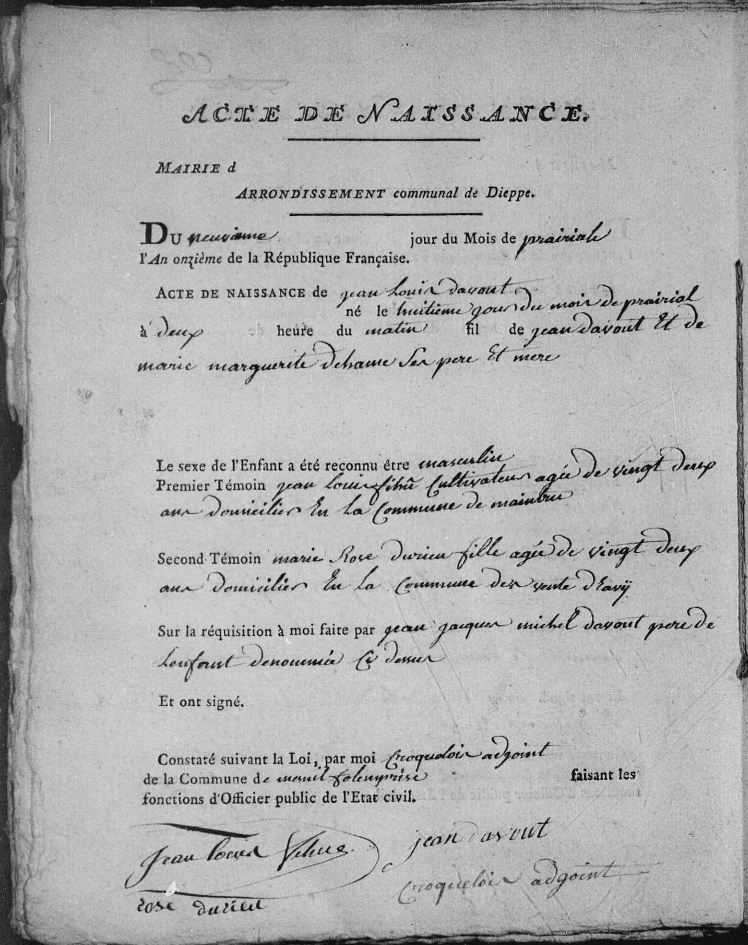 | | 5. Olive Ernestine DAVOUT, b. 14 Jun 1837, Les Grandes-Ventes, Seine-Maritime, France , d. 11 May 1838, Les Grandes-Ventes, Seine-Maritime, France (Age 0 years) |