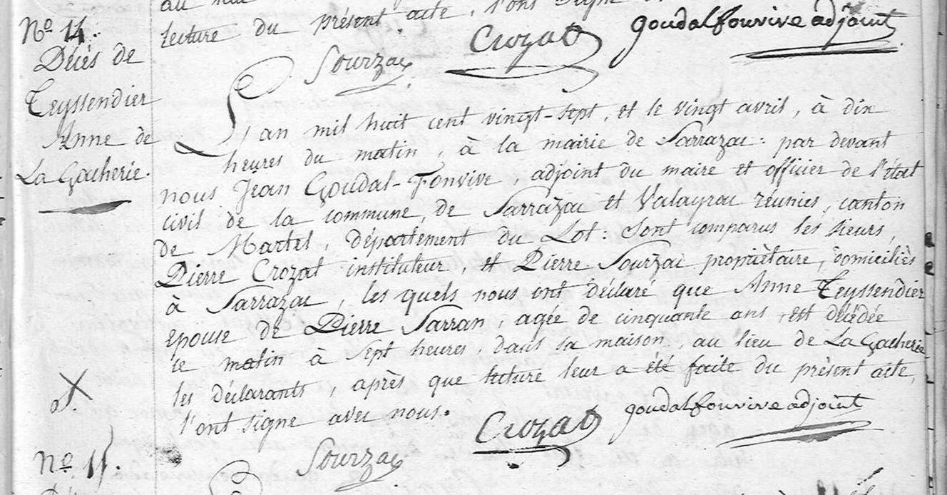| Family | Pierre SARRAN, b. 23 Jun 1779, Sarrazac, Lot, France | |||||