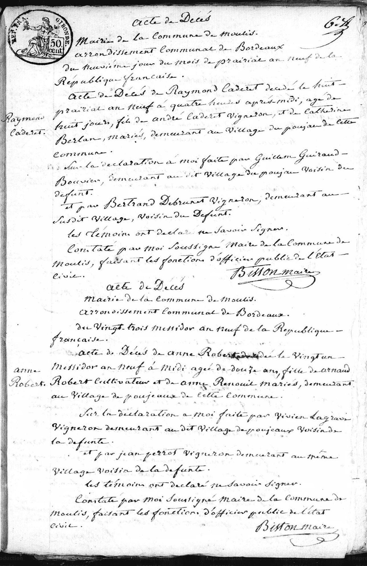 | Father | Arnaud ROBERT, b. Abt 1763, d. 23 Sep 1834, Moulis, Gironde, France | |
