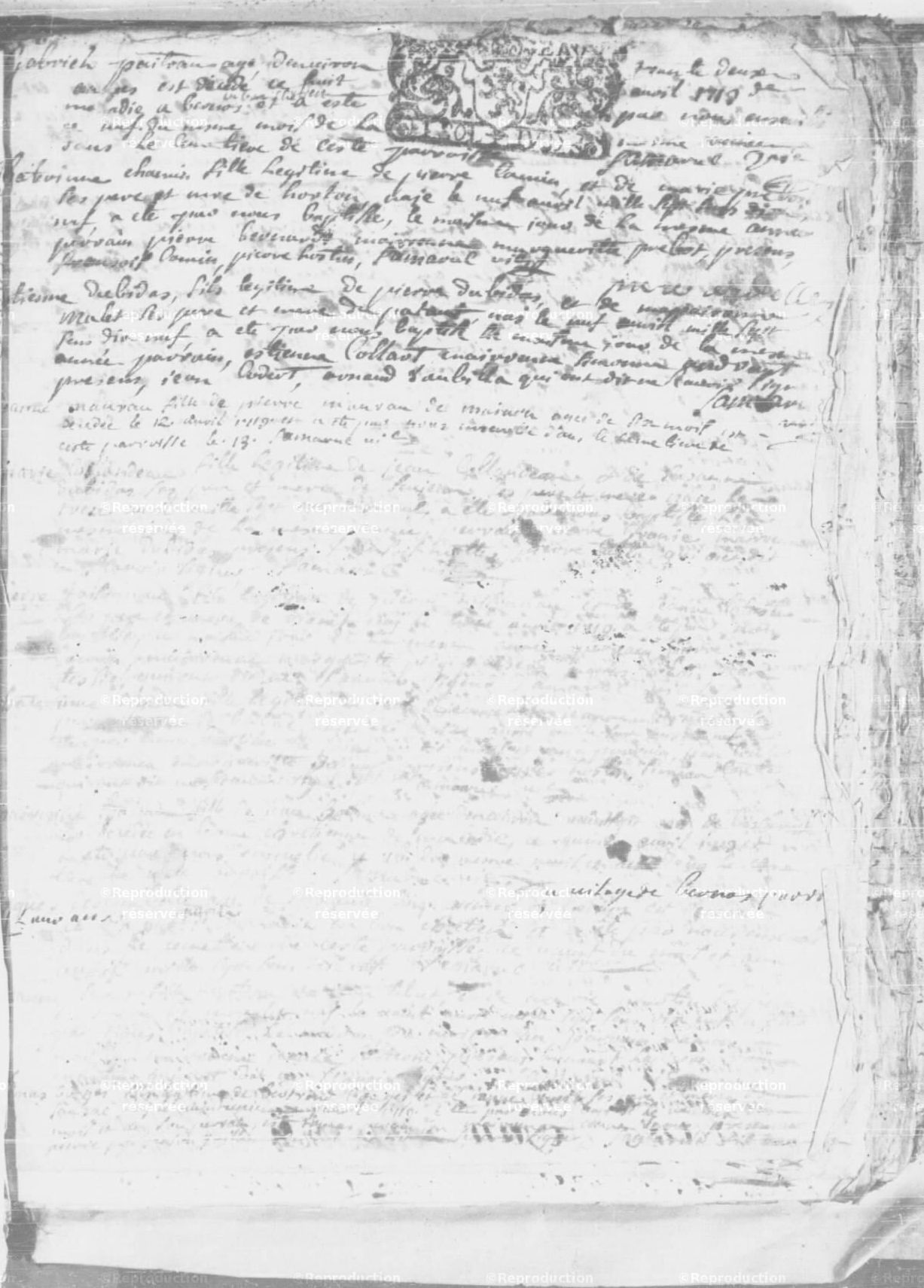 Estienne Debidas, fils légitime de Pierre Debidas et de Peironne Malet ses père et mère [?] né le neuf avril mille sept cent-dix-neuf, a été par nous baptisé le même jour de la même année. Parrain, Estienne Collaut, marraine Françoise [?] Présents, Jean Codenr, Arnand Vaules qui ont dit ne savoir signer.