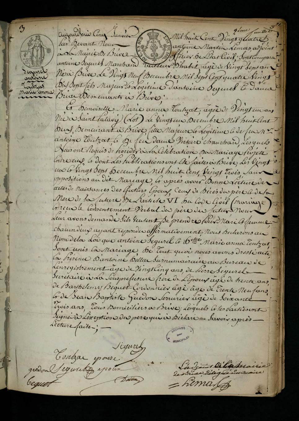 | Father | Antoine SÉGUREL, b. Abt 1762, Brive-la-Gaillarde, Corrèze, France | |