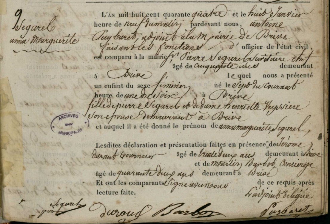 | Father | Pierre SÉGUREL, b. 5 Jan 1793, Brive-la-Gaillarde, Corrèze, France | |