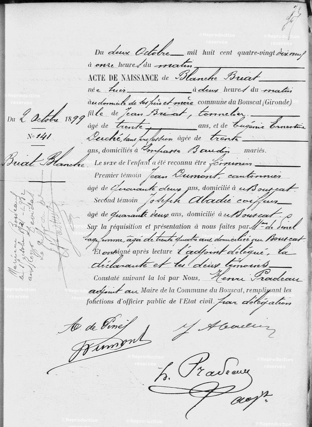 | Father | Jean BRIAT, b. 6 Oct 1868, Saillac, Corrèze, France | |
